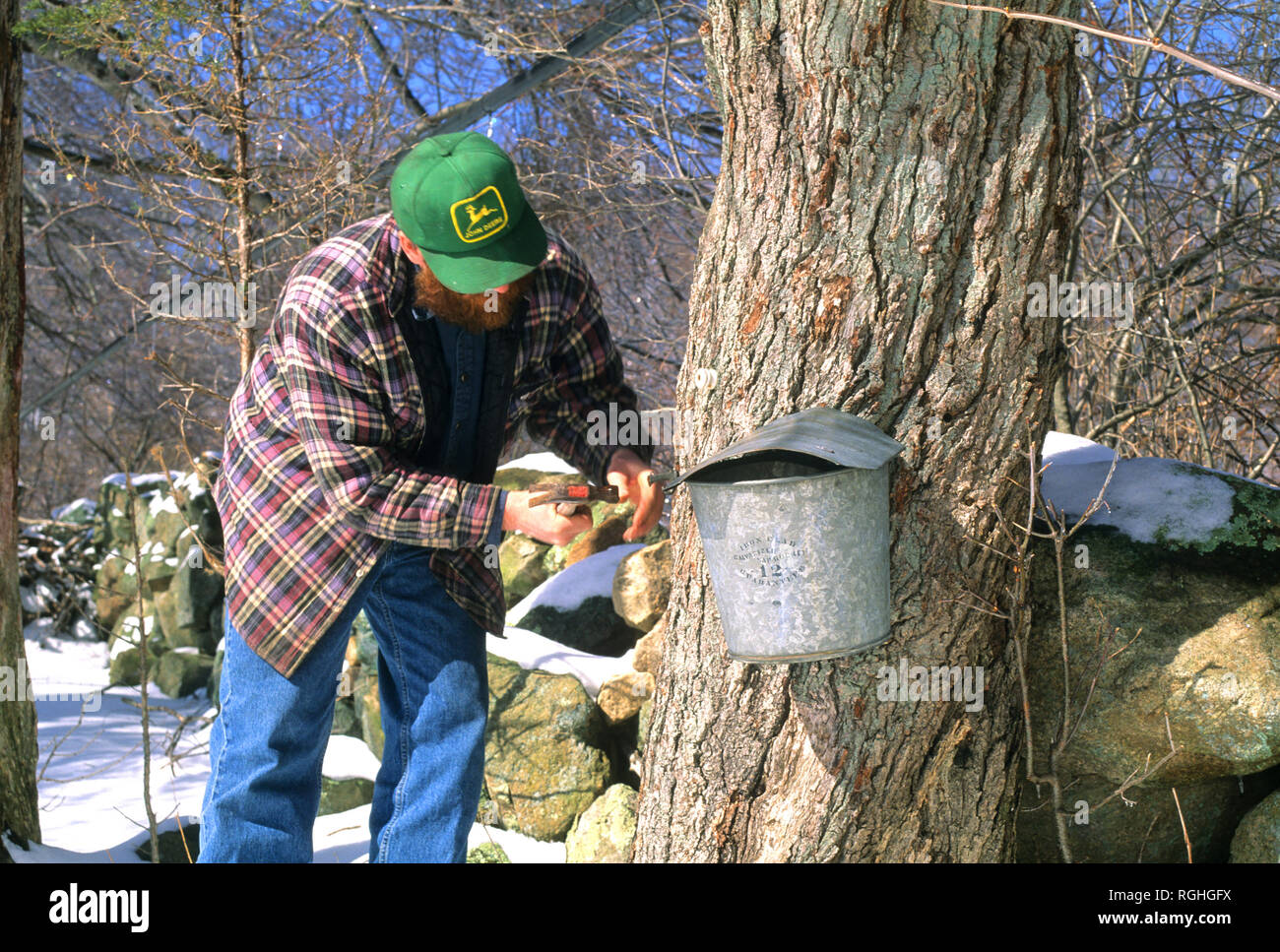Tapping A Tree For The Maple Syrup Season In Richmond Rhode Island Usa Stock Photo Alamy